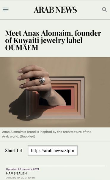Inspired by the architecture of the Arab world, every jewelry piece fashions a contemporary version of a traditional form. OUMAEM focuses on regionalist designs that aims to produce ethically sourced and locally made adorned pieces reflective of new identity. The design process takes abstract vernacular objects developed into new designs that follows constructed regulating lines in order to produce asymmetrical, yet balanced designs with a recognized identity. With architecture at the core of each design, mathematics, geometry, and scientific processes became the tools that makes the jewelry. OUMAEM is a brand that celebrates diversity, unity, and inclusion in the form of a new unique tradition.
